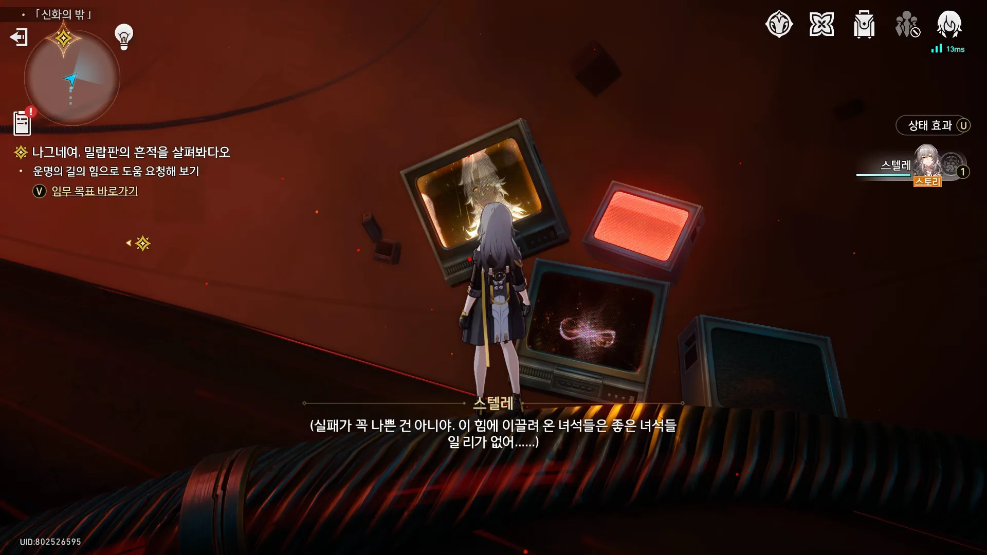 …당신은 실패했다. 「신화의 박」의 장벽이 그 아득한 선율의 목을 졸라 그것들을 쓸모없는 잡음처럼 완전히 걸러내고 차가운 적막만을 남겼다