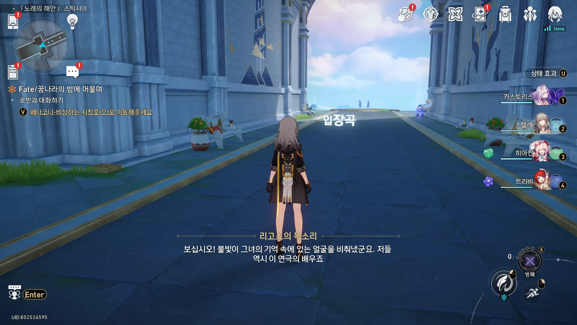 히아킨… ⌈천공⌋의 반신이 만든 다리는 공간의 거리를 건너게 해주었고, 당신에 대한 그들의 신뢰도 시간의 거리를 넘어섰다